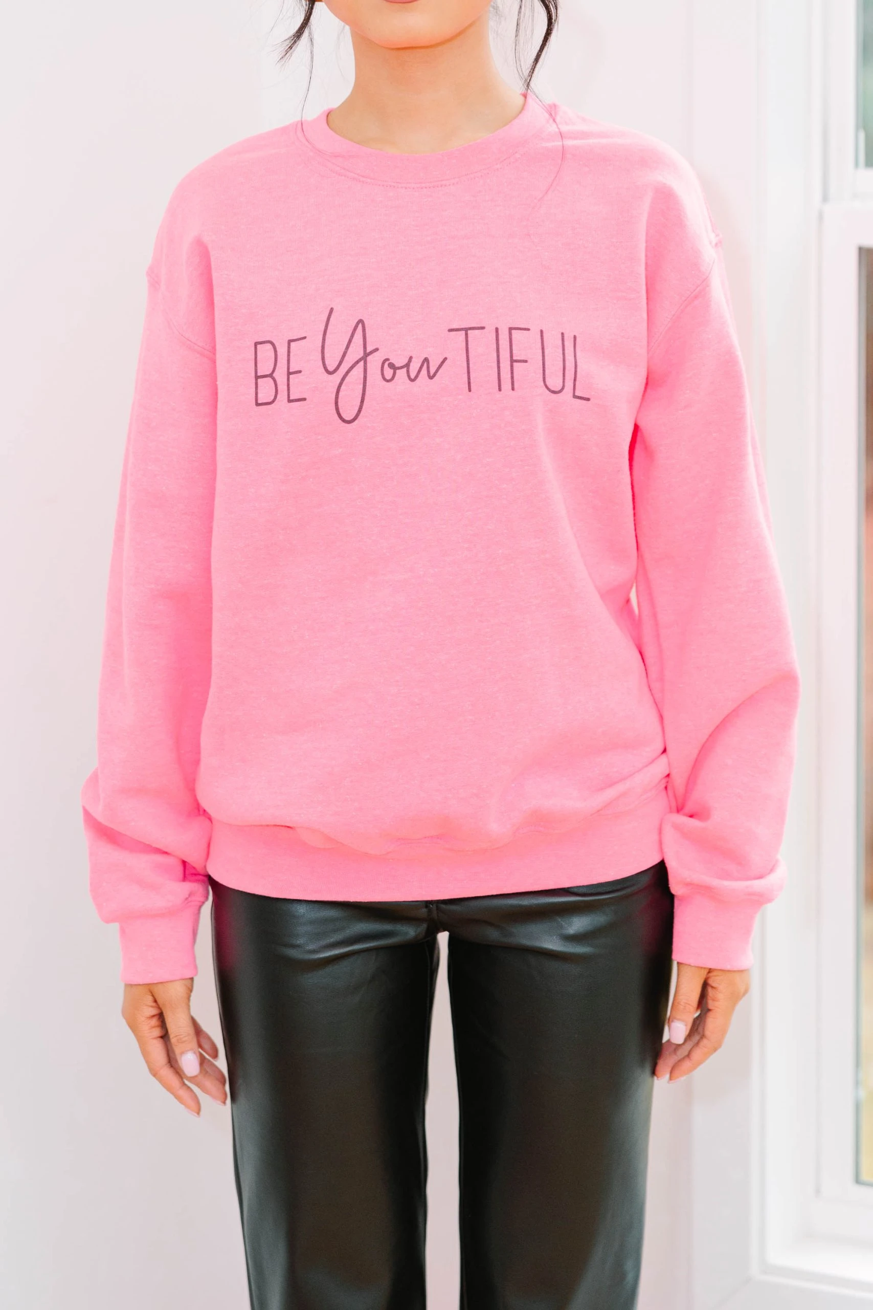 Be you, you beautiful gal! This bright sweatshirt is so cute and uplifting! We hope this cozy sweatshirt reminds you and everyone around you just be their true, beautiful selves! This graphic sweatshirt features long sleeves, a crew neckline, and a confident graphic.