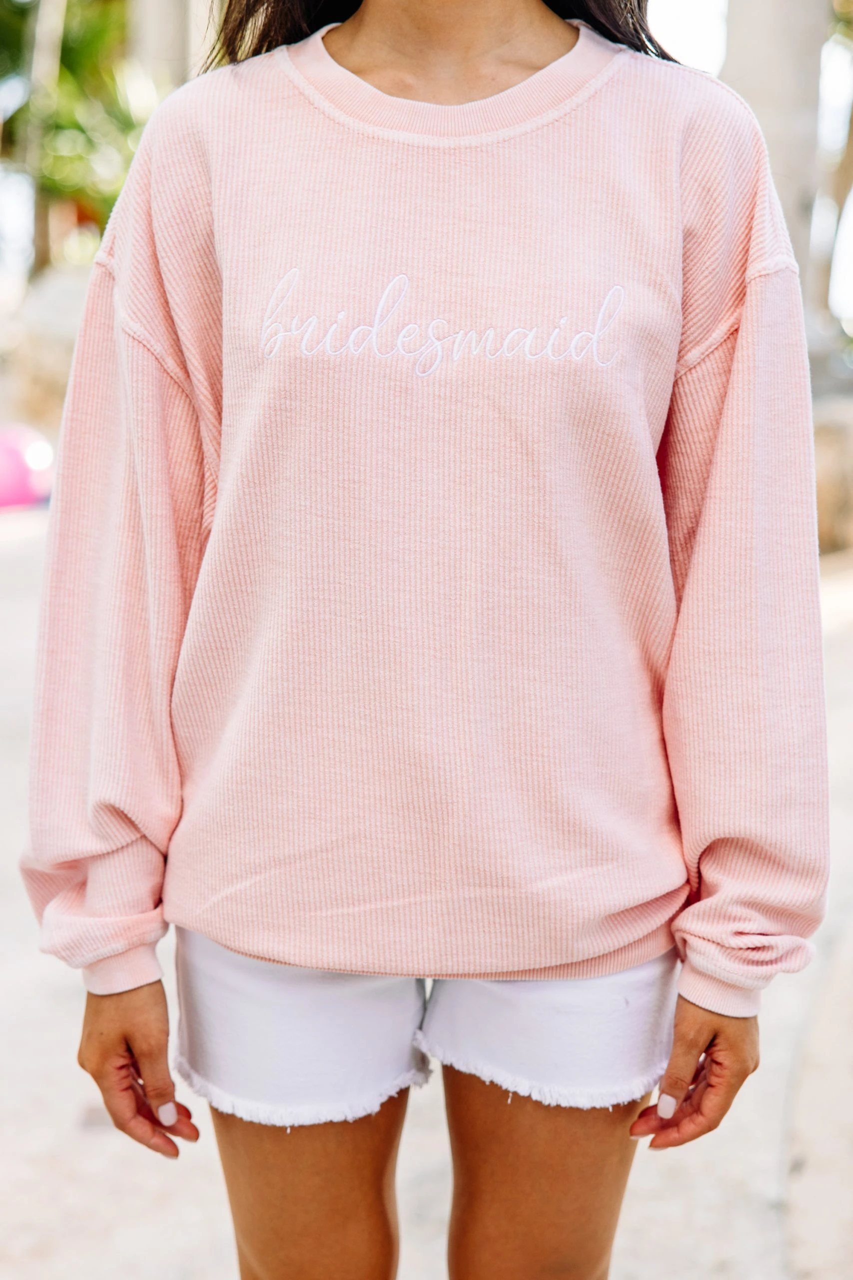 We have found the perfect sweatshirt for all the bridesmaids out there! This corded sweatshirt has such feminine and dainty embroidery! It will look so good on you while your girl wears the matching bride sweatshirt! This sweatshirt features a crew neckline, long sleeves, corded fabric, and cute embroidery