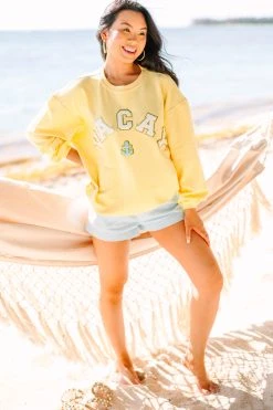 Vacay Mode Mint Green Embroidered Corded Sweatshirt