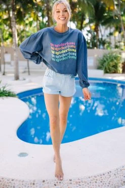 Wanderlust Navy Blue Graphic Corded Sweatshirt
