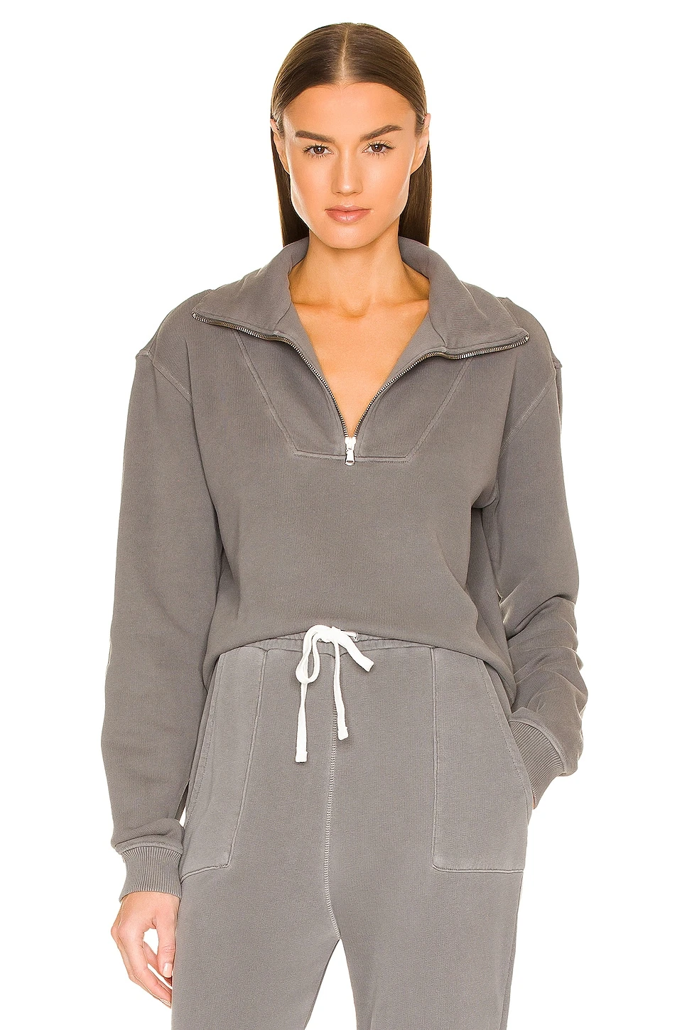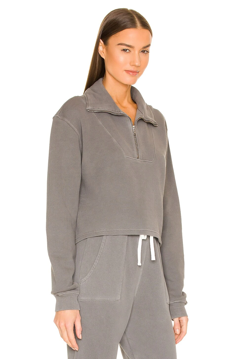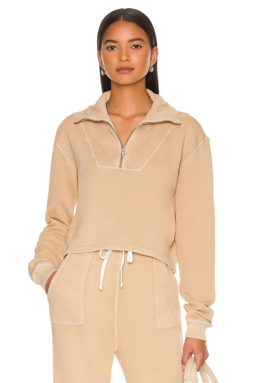 - Partial front zipper closure