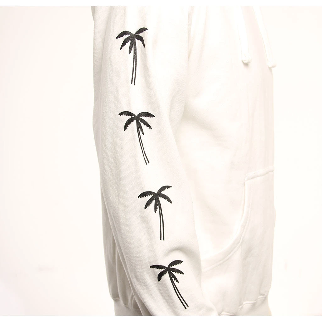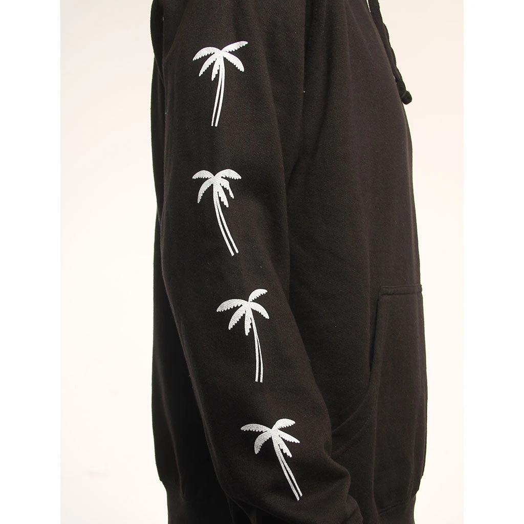 Swamis screenprinted graphic, large on back, small on left chest, palm print on right sleeve