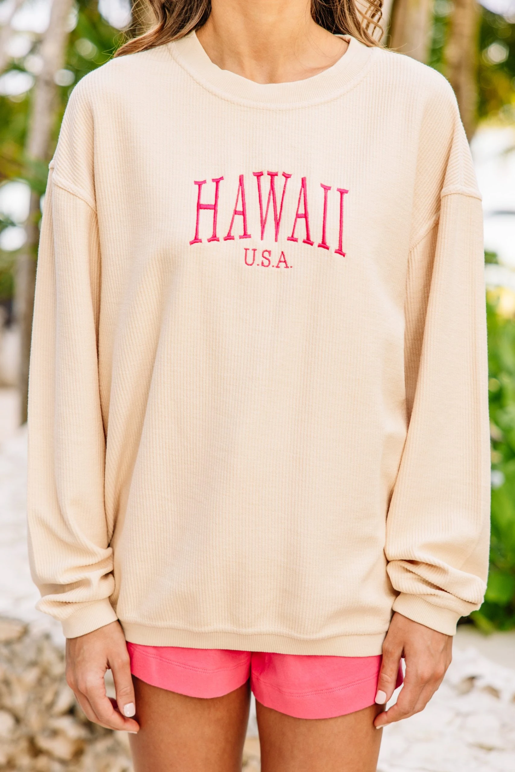 How cute is this corded sweatshirt! We love that natural color especially when paired with that pinky coral embroidery! This sweatshirt is going to look so cute with lounge shorts, jean shorts, or even skorts this spring and summer! This sweatshirt features a crew neckline, long sleeves, a corded fabric, and cute embroidery.