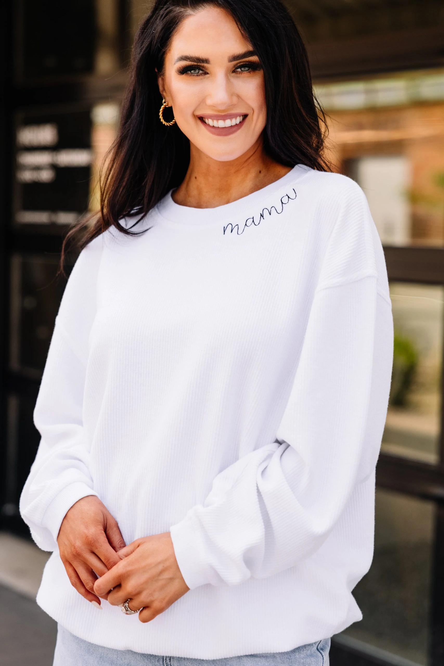 This corded sweatshirt is absolutely perfect for all you mamas out there! It is so comfy and soft! This cutie is going to look and feel amazing on any day where you just want to be comfy but also cute! This sweatshirt features a crew neckline, long sleeves, ribbed/corded fabric, and embroidery around the neckline.