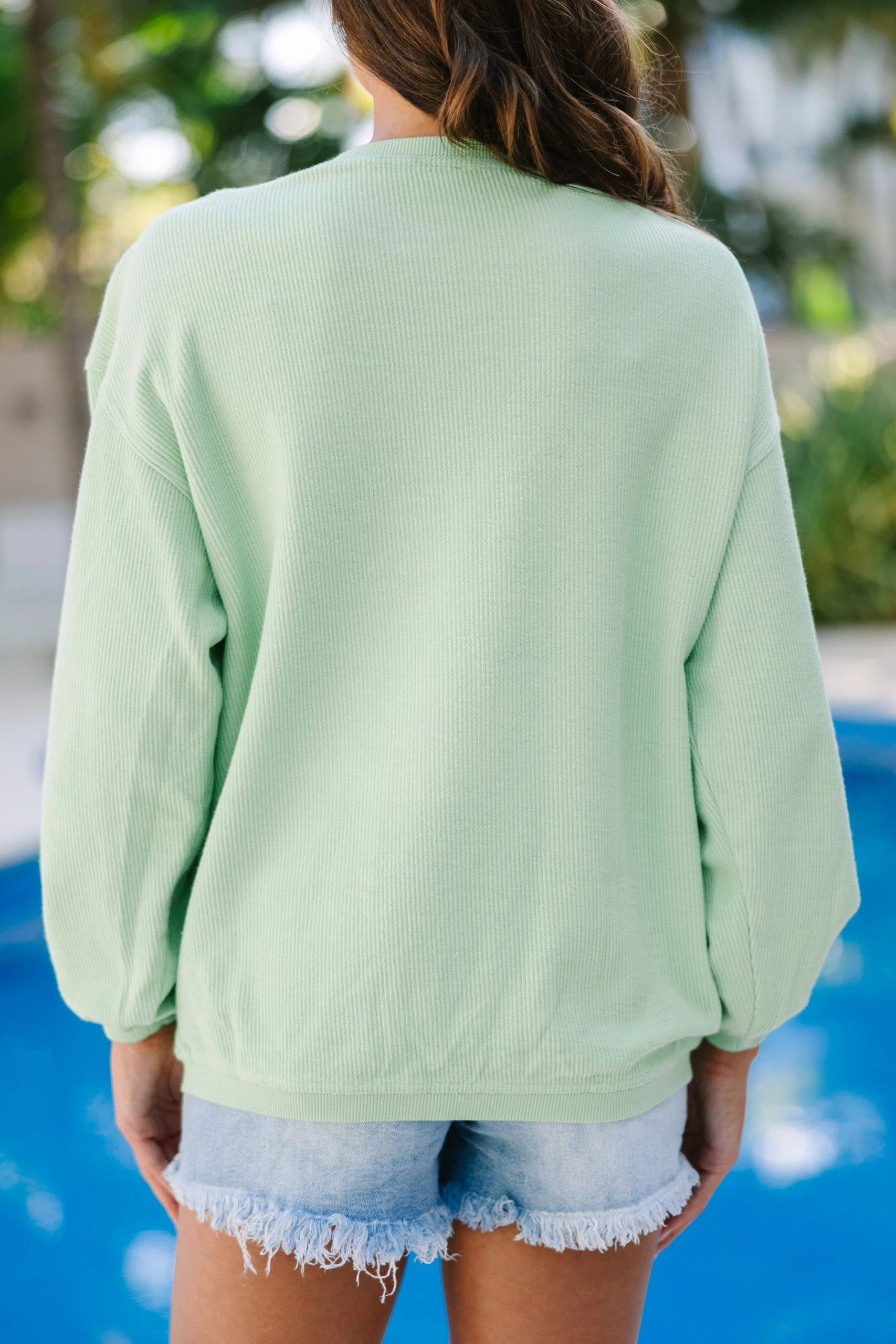 Yes, honey! Margs for the win!! This varsity sweatshirt is just so cute and we love the coloring! This sweatshirt is perfect for any cool summer night! This sweatshirt features long sleeves, a crew neckline, corded fabric, and fun varsity lettering.