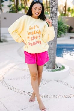 Let’s Watch The Sunset Yellow Graphic Corded Sweatshirt