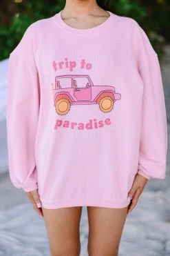Trip To Paradise Blush Pink Graphic Corded Sweatshirt