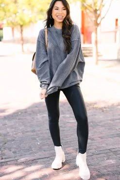 You’re So Classic Charcoal Gray Corded Sweatshirt