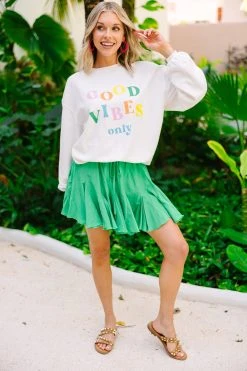 Good Vibes Only White Graphic Corded Sweatshirt