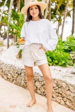 To The Beach White Graphic Corded Sweatshirt