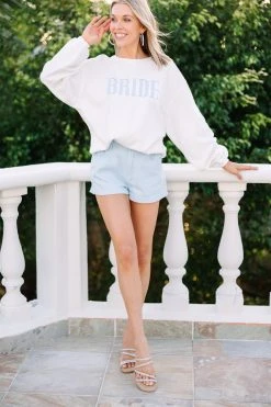Bride White Light Blue Embroidered Corded Sweatshirt
