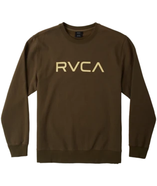 THE BIG RVCA CREW NECK SWEATSHIRT COMBINES COMFORT AND A CLASSIC, HERITAGE LOOK. MADE FROM COTTON-POLYESTER FLEECE IN A HEAVYWEIGHT FEEL, THIS MEN’S REGULAR FIT SWEATSHIRT FEATURES RIBBED FABRIC AT THE CUFFS AND HEM, WITH A CREW NECKLINE AND RVCA LOGO SCREEN PRINT AT THE FRONT.
