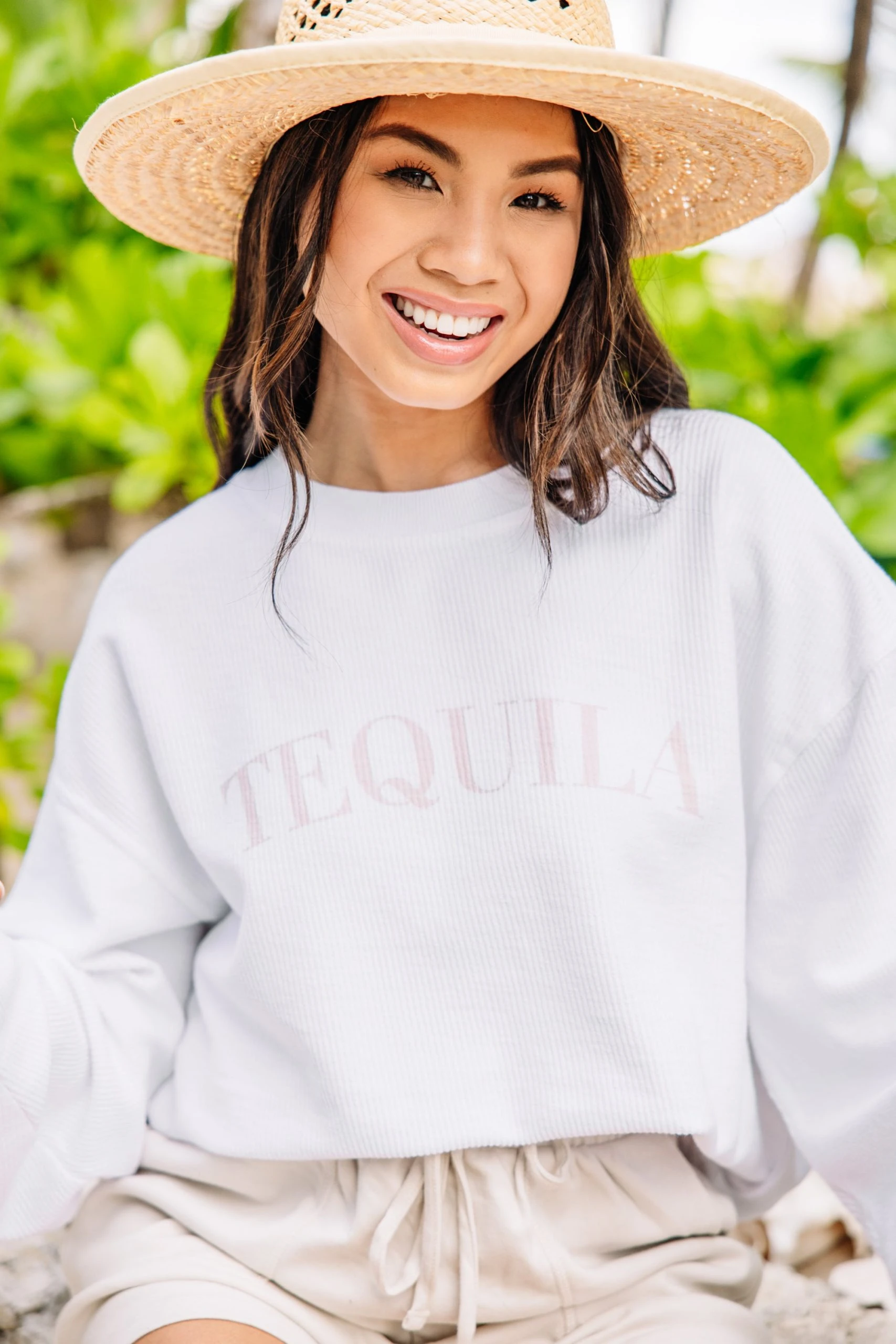 This corded sweatshirt is the perfect combination of fun and classic! The colors and font are so simple and neutral but the graphic itself definitely has a kick! We think this sweatshirt is going to look so good with shorts this summer! This sweatshirt features a crew neckline, long sleeves, a corded fabric, and a simple graphic.Â