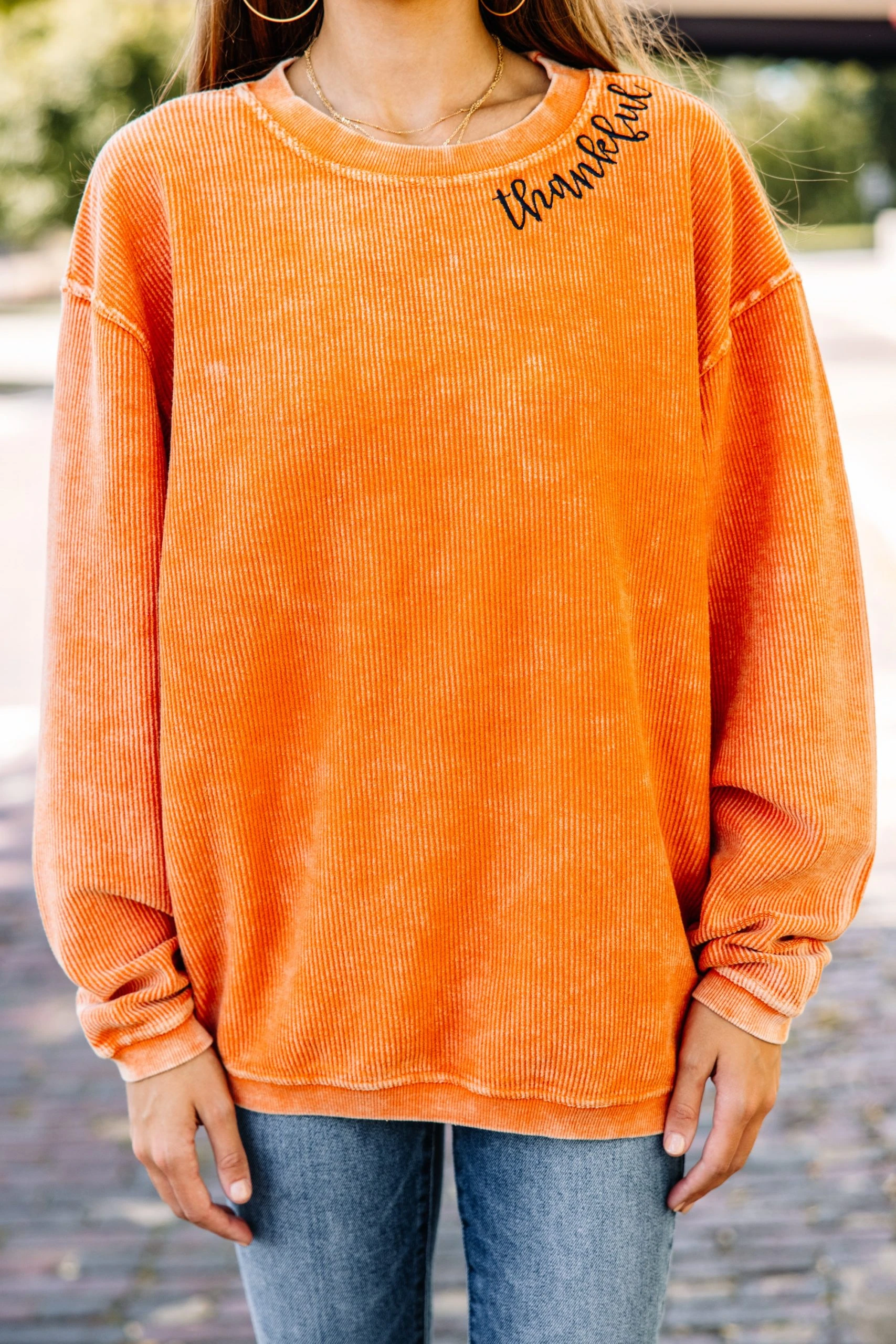 Thanksgiving is right around the corner and this embroidered sweatshirt says it all! What are we most thankful for this year? Customers like you! This sweatshirt features long sleeves, a ribbed/corded fabric, a crew neckline, and cute embroidery.